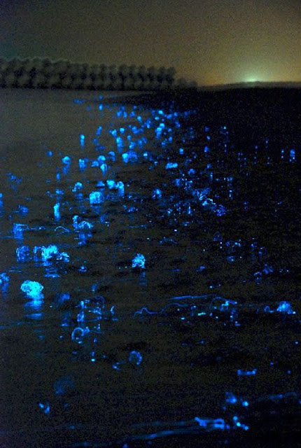 Japán partjain mesebeli látvány tárult az emberek elé.Több ezer nagy mélységben élő világító medúzát mosott partra a tenger.Lélegzet elállító látvány már maga az állat is csoda szép és érdekes testük 97% víz.Olyan törékenynek látszanak és gyönyörűnek elegáns állatok és még megközelíthetetlen.Ha meg csíp szinte garantált a halál.